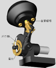 ④安裝銷軸等,調(diào)整臂與螺紋叉對(duì)齊后安裝圖示附件,并固定。