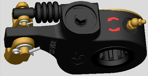 ③調(diào)整安裝角度,用12的扳手以殼體上所標(biāo)方向旋轉(zhuǎn)調(diào)節(jié)螺母,使調(diào)整臂銷孔與螺紋叉孔對(duì)齊,如安裝角度不在100°—105°之前,需調(diào)整螺紋叉。