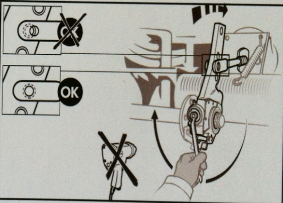 ②固定調(diào)整臂,順時(shí)針轉(zhuǎn)動(dòng)調(diào)節(jié)螺母,調(diào)整臂銷孔與氣室撥叉孔自然對(duì)正。然后控制臂按控制臂上箭頭事宜方向推到極限位置。