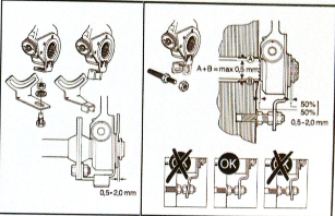 ②安裝調(diào)整臂,把調(diào)整臂安裝在凸輪軸上,并用墊片調(diào)整軸向位置使調(diào)整臂的柄中心與螺紋叉中心對(duì)齊。